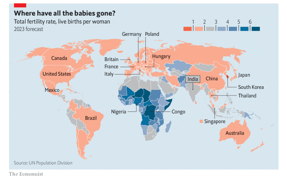 De esta manera The Economist inicia el planteamiento del problema de la fertilidad a nivel mundial. Un fenómeno que ya no es exclusivo de Italia, sino que se ha extendido alrededor del mundo desde los países ricos hasta los países pobres. Destacando la preocupación por la disparidad entre la población joven y la de edad avanzada en términos económicos.