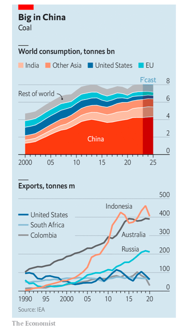 Otra de las razones —y la fundamental— es que el carbón continúa siendo la opción más barata y abundante respecto de otros combustibles, al final del día lo que puedes transportar con GNL resultará más barato con carbón. Es así como en épocas de crisis donde la escasez se hace presente, el carbón deviene el combustible por excelencia. De esta manera los operadores de la industria del carbón esperan que el consumo mundial en 2023 crezca al mismo ritmo de 3-4% de 2022; esto resulta evidente al considerar (por ejemplo) que Europa seguirá incrementando su demanda puesto que en el próximo verano, para satisfecer sus necesidades de refrigeración, buscará nuevamente el mineral contaminante.