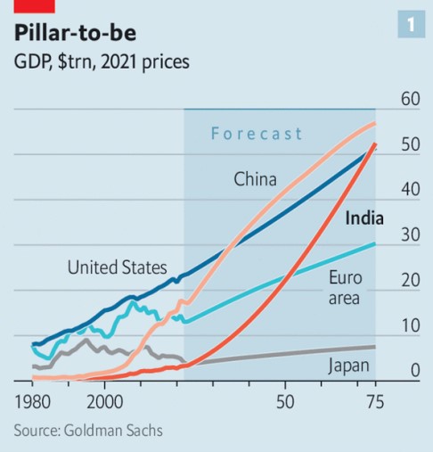 En Occidente algunos señalan que el nepotismo, el proteccionismo, los estragos de la pandemia, y una democracia endeble, son grandes amenazas para el desarrollo económico. Mientras que líderes chinos apuntan que la diversidad lingüística de India, su enredada burocracia, y su fuerza de trabajo poco calificada vuelve a este país un lugar poco atractivo para invertir. La cuestión es que India solo necesita seguir creciendo como lo hasta ahora, y en 2075 habrá superado el PIB de Estados Unidos (dato crucial 2).