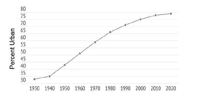 El tercer periodo inicia con la Revolución Mexicana. Durante este periodo hubo cambios en el uso de suelo, la industrialización agrícola, el incremento de la población y la urbanización del país. La Revolución Mexicana inició por las injusticias en las condiciones sociales y económicas y de tenencia de la tierra, tiempo después se logró una reforma agraria. Con el establecimiento de las nuevas leyes posteriores a la revolución, el Estado convirtió las haciendas en tierras comunales o ejidos (la tierra que se le otorga a un grupo de individuos para su uso, en la práctica se divide en parcelas familiares) (dato crucial 4).