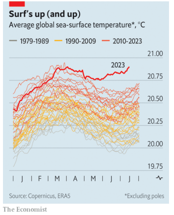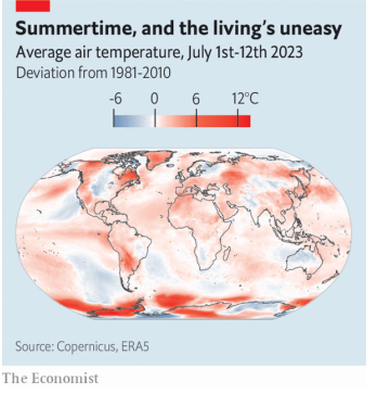 The Economist [2023], "Turning up the heat. Are the current heatwaves evidence that climate change is speeding up?", The Economist, London, 22 de julio, https://www.economist.com/science-and-technology/2023/07/19/are-the-curr...