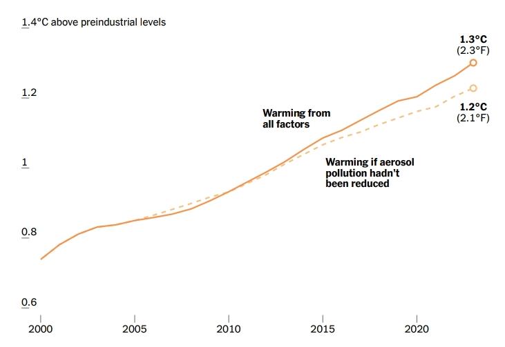 4. Los aerosoles comenzaron a disminuir desde 2020 cuando se comenzó a eliminar el azufre en combustibles marinos. A pesar de la disminución en los aerosoles, hay otros factores que impulsan el calentamiento.