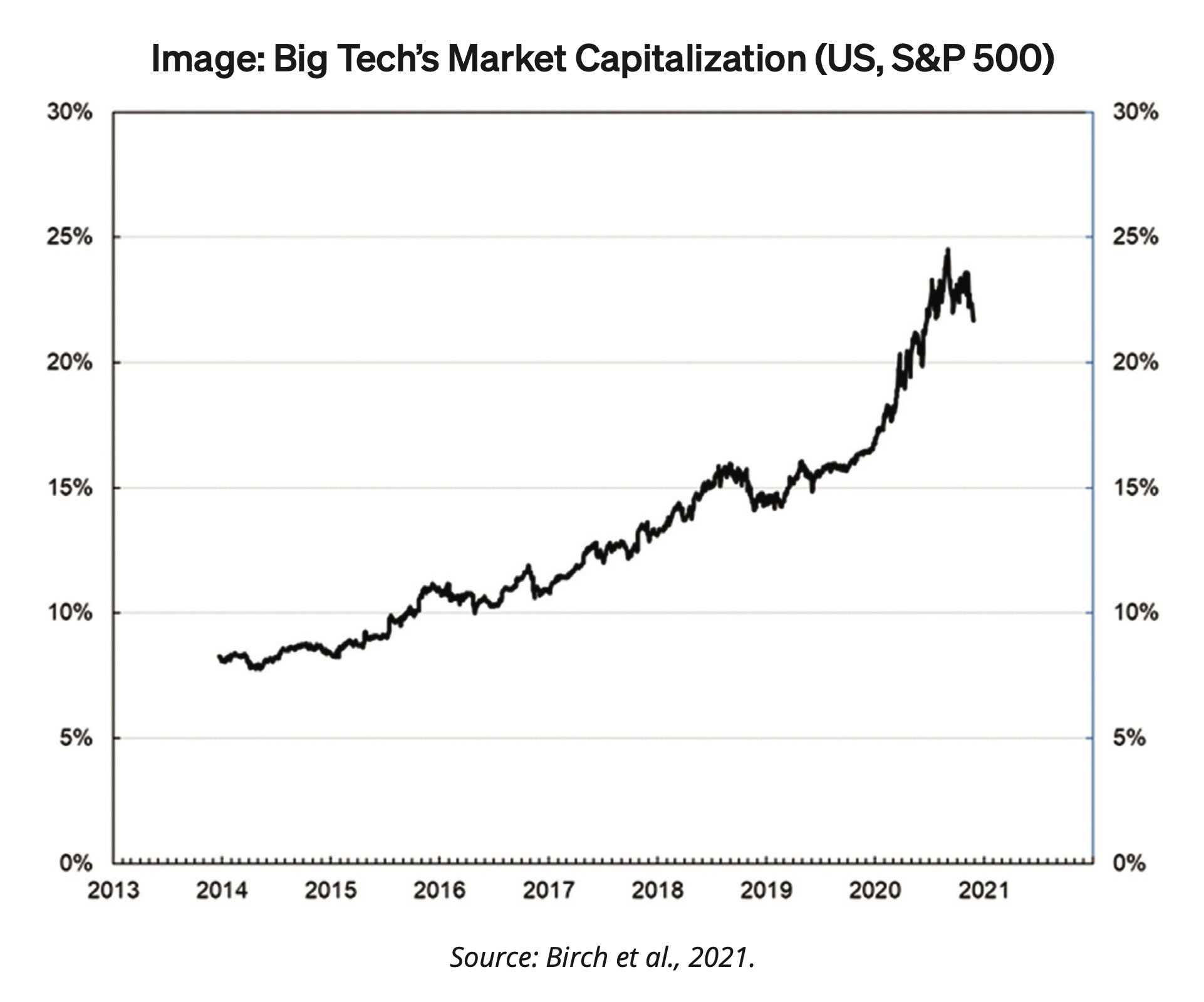 El auge de las grandes empresas tecnológicas viene acompañado de ventajas y desventajas, tanto sociales como económicas. Ahora, corporaciones transnacionales como Apple, Amazon, Alphabet (antes Google), Microsoft y Meta (antes Facebook), son intermediarias de muchas actividades e intercambios de información que se realizan en lo cotidiano, en todo el mundo: redes sociales, infraestructuras laborales y recreativas, bienes y servicios, por mencionar unos casos. Al mismo tiempo, la información otorgada por sus usuarios y usuarias es apropiada por esas empresas para convertirla en otros productos, servicios e infraestructuras, con los cuales se mantienen lucrando (Dato crucial 3).