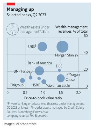 3) El banco de inversiones Morgan Stanley ahora supervisa alrededor de 6 billones de dólares en activos patrimoniales. Mientras que, el banco suizo UBS, tras su fusión, ahora supervisa 5.5 billones de dólares.