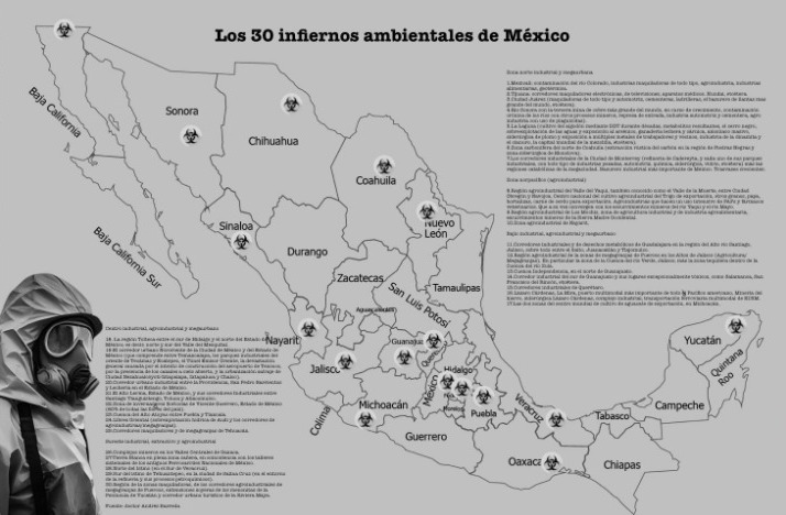 Flores, Nancy [2023], "Los 30 infiernos industriales en México causantes de cáncer y muertes masivas", Contralínea, 7 de octubre, https://contralinea.com.mx/interno/semana/los-30-infiernos-industriales-...