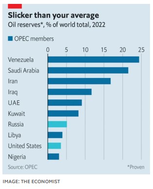 2) La gráfica 1 muestra las reservas de petróleo de los miembros de Organization of the Petroleum Exporting Countries (OPEC por su sigla en inglés) para 2022. Donde se puede apreciar que el líder absoluto es Venezuela, seguido de Arabia Saudita e Iran. Junto a los petroestados, el hecho de pedir una eliminación gradual de los combustibles puede ser una preocupación y por ende generar presión para evitar mayores presiones.