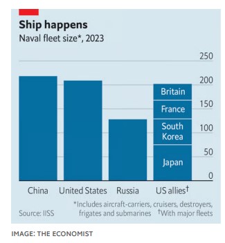 The Economist [2023], "Gun, boat, diplomacy. Welcome to the new era of global sea power", The Economist, London, 13 de enero, https://www.economist.com/international/2024/01/11/welcome-to-the-new-er...