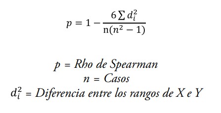 * El coeficiente de correlación de Spearman es una medida no paramétrica de la correlación de rango (dependencia estadística del ranking entre dos variables).