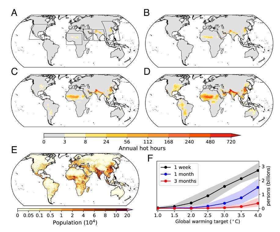Los resultados obtenidos en la investigación indican que una gran parte de la población a nivel mundial va a experimentar por primera vez una exposición prolongada a calor húmedo extremo no compensable. Esta exposición creará dificultades de adaptación a los seres humanos a las nuevas condiciones; entre los desafíos se encuentra la seguridad alimentaria, energética, hídrica, la salud humana y el desarrollo económico. Las regiones que experimentarán la peor parte de condiciones mortales o intolerables serán Medio Oriente, el sur de Asia y África subsahariana. Además, también se espera que otras regiones ecuatoriales y de Sahel de África y el este de China también se vean afectadas al alcanzar una temperatura de 2°C. Si el calentamiento llega a 3 y 4°C, América del Norte y del Sur y el norte de Australia van a enfrentar periodos prolongados de calor.