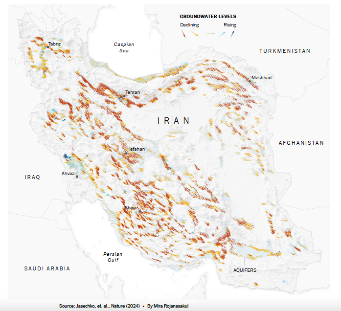 Erdenesanaa, Delger y Mira Rojanasakul [2024], "Where Groundwater Levels Are Falling, and Rising, Worldwide", The New York Times, New York, 24 de enero, https://www.nytimes.com/2024/01/24/climate/global-groundwater-aquifer-le...