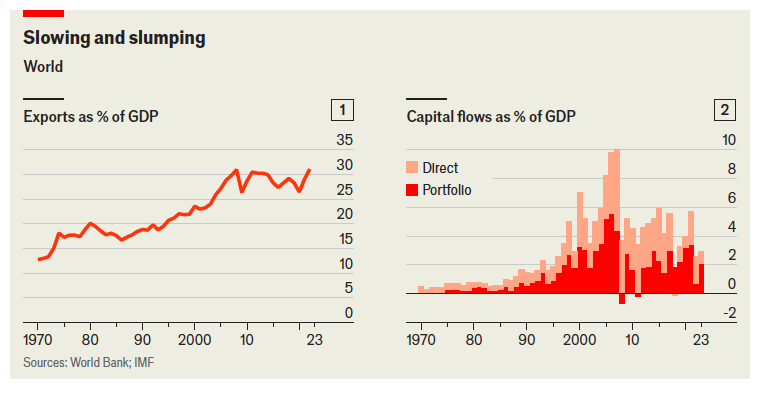 En semejante contexto, The Economist señala los signos de un proceso desglobalización porque los estímulos al comercio, las inversiones, así pues el libre flujo de capitales, comienzan a desvanecerse para dar paso a los subsidios y sanciones. Es decir, lo opuesto al libre mercado.