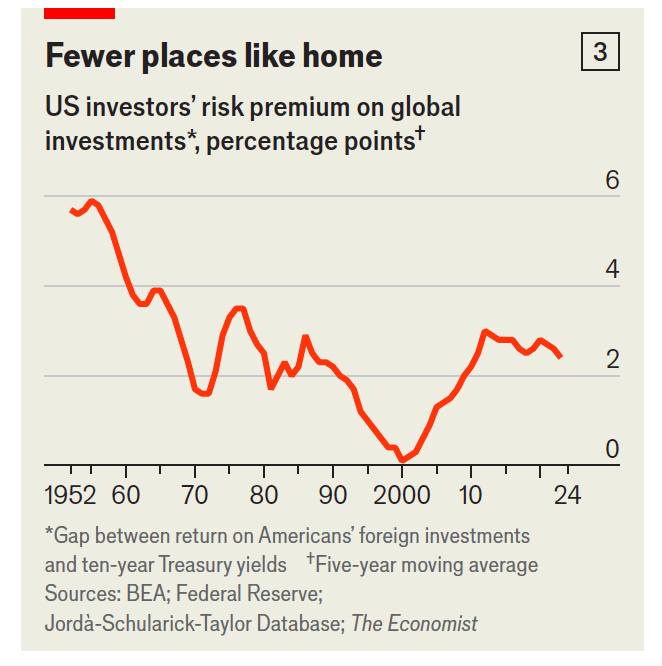 15) La gráfica 3 señala el cambio entre los rendimientos de los inversores estadounidenses en el extranjero en el periodo 1952-2024. De manera que desde 2010 la brecha se ha ampliado (superior a la observada en 1970) y reducido.