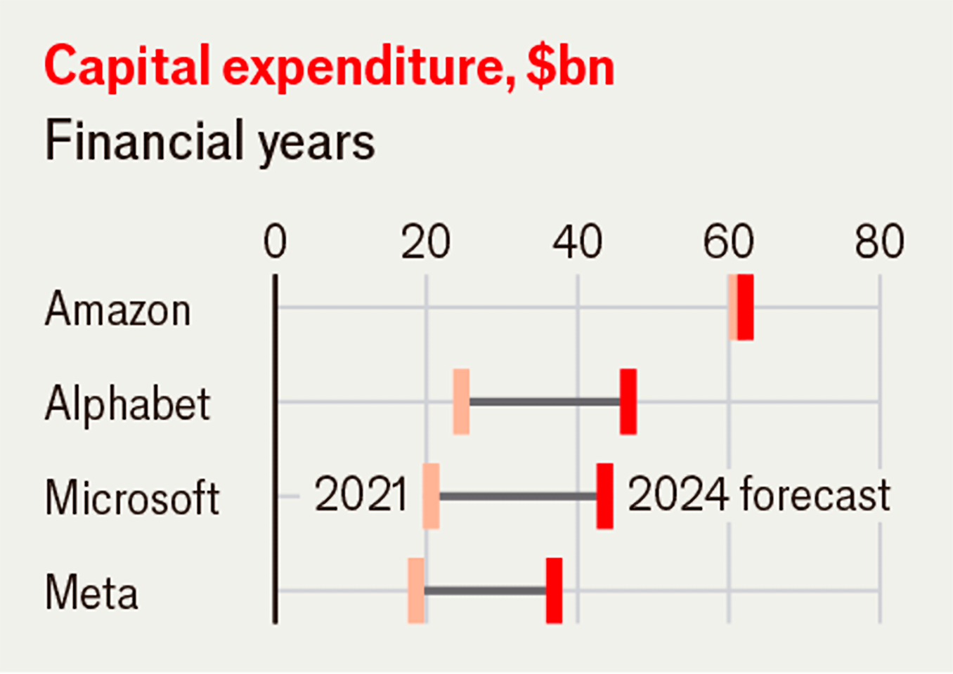 The Economist [2024], "A trillion-dollar AI arms race. Big tech's capex splurge may be irrationally exuberant", The Economist, London, 18 de mayo, https://www.economist.com/leaders/2024/05/16/big-techs-capex-splurge-may...