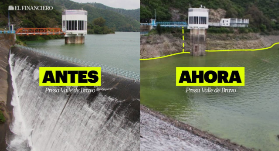 El sistema hídrico Cutzamala, vital para el suministro de agua en Ciudad de México al proveer 27% del agua de la ciudad, está experimentando niveles históricamente bajos, cayendo a 30% de su capacidad normal. Esto representa una disminución significativa en comparación con años anteriores. Las autoridades advierten que podría llegar un "día cero" el 26 de junio, cuando el sistema podría alcanzar 20% de su capacidad, lo que lo dejaría inutilizable para proveer agua a la ciudad. En algunas reservas, el nivel de agua ha caído tanto que las autoridades han tenido que cancelar su uso, por ejemplo, la presa Miguel Alemán en Valle de Bravo (dato crucial 1).