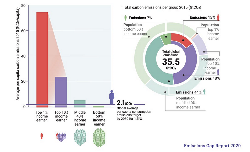 En este capítulo, Steinberger expone que la crisis climática es una crisis de acumulación de riqueza. Los más ricos no sólo son responsables de la mayoría de las emisiones de CO2 debido a su control sobre la industria de los combustibles fósiles (Dato crucial 1), sino que también obtienen beneficios económicos significativos gracias a la dependencia que nos crean hacia ésta.