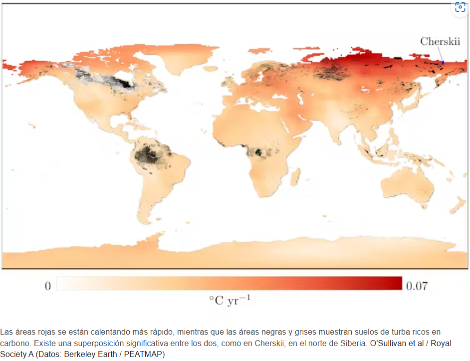 2) En la figura 1 se muestran las áreas de mayor calentamiento, así como las zonas en las que se encuentran suelos de turba.