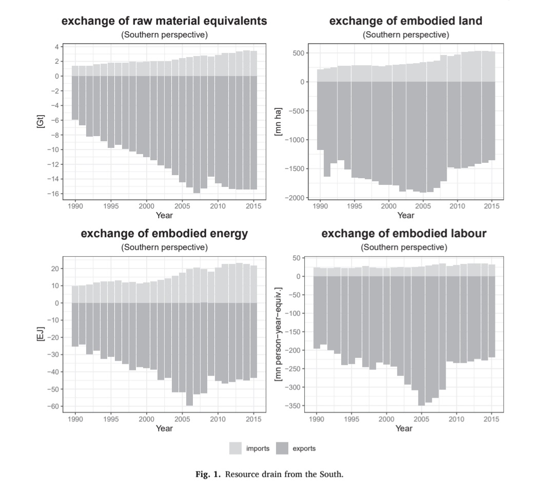 Hickel, J., Dorninger, C., Wieland, H., & Suwandi, I. [2022]. Imperialist appropriation in the world economy: Drain from the global South through unequal exchange, 1990–2015. Global Environmental Change, 73, 102467. https://doi.org/10.1016/J.GLOENVCHA.2022.102467