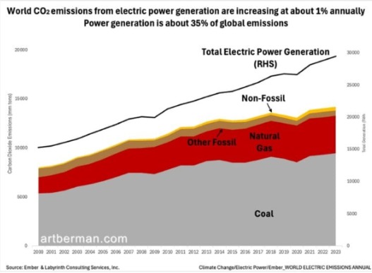 2) Emisiones mundiales de CO2 derivadas de la generación de energía eléctrica aumentan 1% aproximadamente.