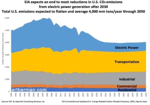 4) La AIE espera que la mayoría de las reducciones en las emisiones de CO2 de Estados Unidos provenientes de la generación de energía eléctrica terminen después de 2030.