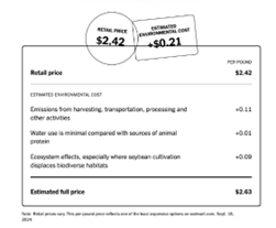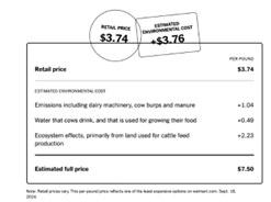 True Price, una organización holandesa pionera en contabilidad de costos al por menor, en colaboración con las Naciones Unidas y la Fundación Rockefeller, desarrolló un sistema de datos para comparar los costos ambientales estimados de los alimentos producidos en Estados Unidos. Estos costos se dividen en tres categorías principales: el impacto del cambio climático derivado de las emisiones de gases de efecto invernadero, el uso del agua y los efectos sobre los ecosistemas debido al uso del suelo, incluyendo la pérdida de biodiversidad.