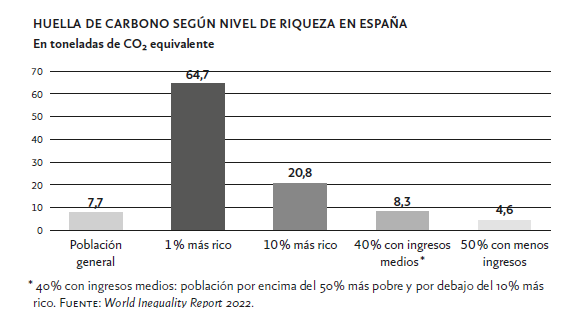 5) El informe de Oxfam de 2020 Combatir la desigualdad de las emisiones señala que 10% de la población mundial contribuye con 52% de las emisiones contaminantes. Riechmann añade que dentro de ese número se encuentra una gran parte de la población del norte global.
