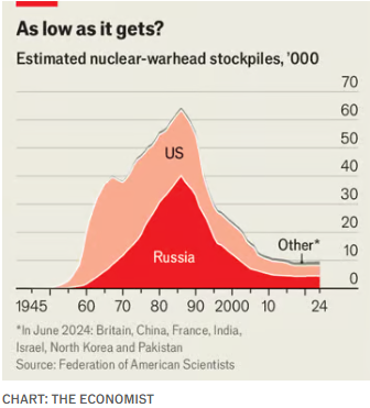 5) Desde 1968, el número de ojivas nucleares en todo el mundo se ha reducido de más de 70 mil a cerca de 12 mil en la actualidad.