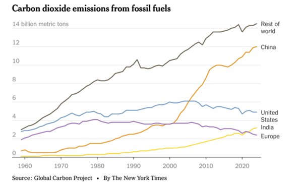 4.- China, el mayor emisor mundial, registró un pequeño aumento en las emisiones en 2024, de alrededor de 0.2%