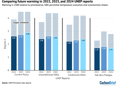 Hausfather, Zeke [2024], "UNEP: New climate pledges need 'quantum leap' in ambition to deliver Paris goals", Carbon Brief, 24 de octubre, https://www.carbonbrief.org/unep-new-climate-pledges-need-quantum-leap-i...