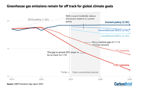El Programa de las Naciones Unidas para el Medio Ambiente (PNUMA) advierte que los países deben dejar de lado las promesas vacías y adoptar medidas climáticas reales. En su informe anual sobre la brecha de emisiones, recuerda que el plazo para presentar nuevos compromisos climáticos (NDC) vence en febrero de 2025, y estos deben incluir metas de reducción para 2035.
