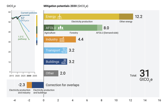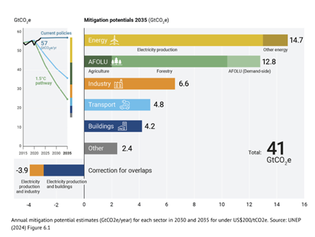 El sector energético presenta el mayor potencial de reducción, especialmente mediante la sustitución de combustibles fósiles por energías limpias. También el sector agrícola, forestal y de uso del suelo ofrece oportunidades relevantes, con la reforestación como principal contribución. Aunque se necesita más inversión, el informe concluye que una descarbonización profunda es factible en la próxima década y puede lograrse a un costo accesible.